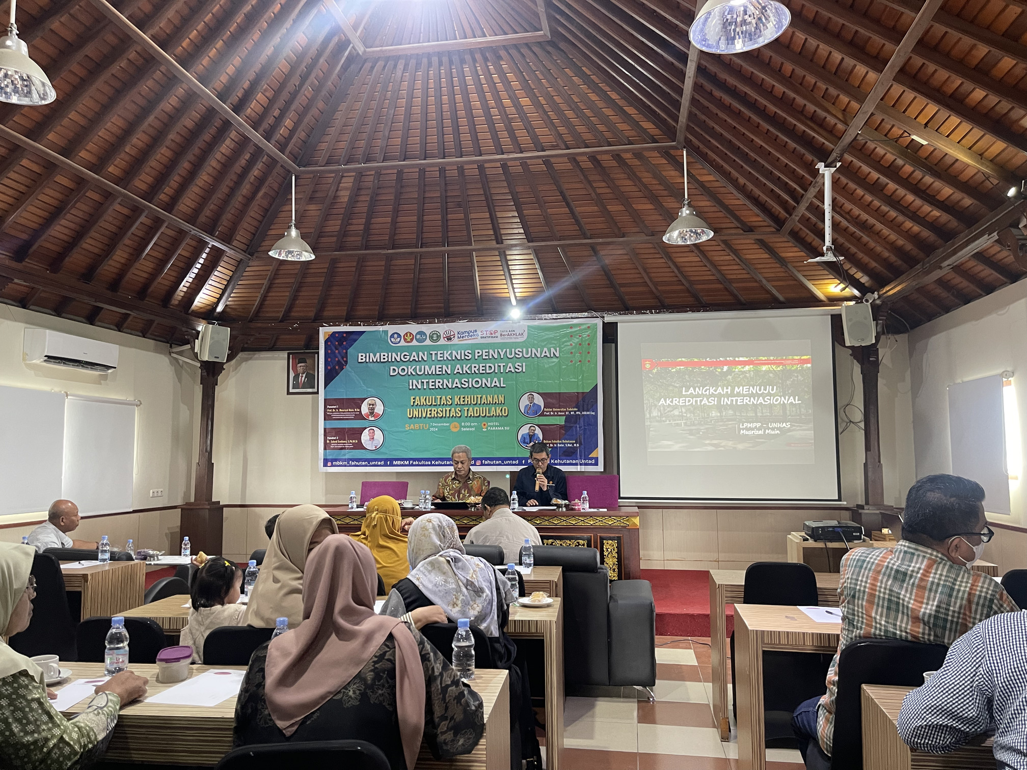 Pada tanggal 7 Desember 2024, Fakultas Kehutanan Universitas Tadulako mengadakan kegiatan bimbingan teknis penyusunan dokumen akreditasi internasional di Hotel Parama Su. Kegiatan ini dihadiri oleh dosen, staf, dan mahasiswa Fakultas Kehutanan, serta diharapkan dapat memberikan pemahaman yang lebih baik mengenai proses akreditasi internasional.